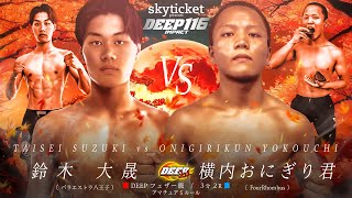 Record: 3-0-0 Organization: DEEP Fighting Style: MMA (All-rounder) Taisei Suzuki is a rising prospect in the DEEP featherweight division. Born in 2005, he has maintained a perfect professional record since his debut in March 2025. Known for his finishing ability, he secured a neck crank victory over Ren Fujii in December 2025, a first-round TKO against Yutaka Imamura in September 2025, and a rear-naked choke win in his professional debut against Koichi Hiraishi.