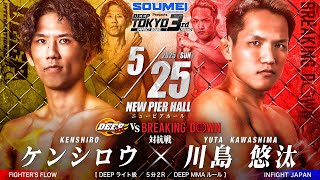 Kenshiro Yamamoto is an undefeated mixed martial artist from Japan competing in the 155 lbs lightweight division with a professional record of 4-0-0. Primarily competing in the DEEP organization, he has demonstrated finishing ability with a mix of submissions and decisions. In his most recent outings, he secured a unanimous decision victory over Ryoma Ishizuka in December 2025 and earned a first-round technical submission via rear-naked choke against Shunsuke Miyajima in August 2025.